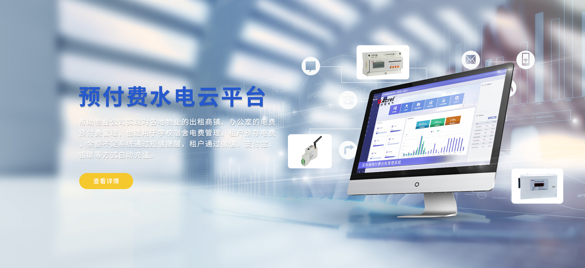 安科瑞提供的解決方案包括Acrel-EIoT能源物聯網云平臺、變電所運維云平臺、安全用電管理云平臺環保用電監管云平臺智慧消防云平臺、能源管理云平臺、工業企業能源管控平臺、遠程預付費云平臺、餐飲油煙監管云平臺電動汽車/電瓶車充電樁收費管理云平臺、電力監控/無線測溫系統、電能質量治理系統、電氣火災監控系統消防設備電源監控系統防火門監控系統、應急照明和疏散指示系統、智能照明控制系統、醫用隔離電源絕緣監測系統等,幫助用戶實現能源智能化、可視化、精細化管理,提高用能效率和用能安全,為企業節能降耗和實現能源數字化建設提供數據服務。